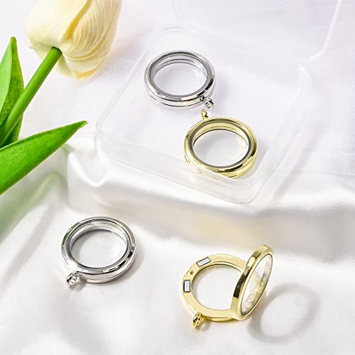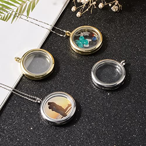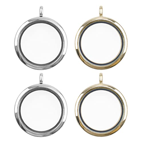 WANDIC - Ciondolo a forma di medaglione, 4 pezzi, con cornice in cristallo elettrolitico rotondo, per 2 foto