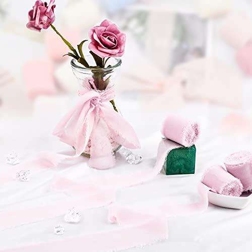 WANDIC Frange in chiffon, 4 rotoli da 1,5 cm x 5,5 m con bordi sfilacciati, nastro simile alla seta, per regali, bouquet di capelli, fiocchi per matrimoni, festival, decorazioni fai da te, rosa chiaro