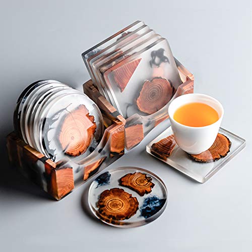 WANDIC, Set di 5 stampi in Resina epossidica con stampi Rotondi per sottobicchiere, stampi Quadrati in Resina epossidica, stampi per colata epossidica e Supporto in Resina per Gioielli, Fai da Te
