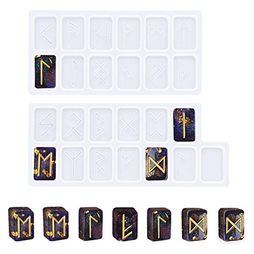WANDIC - Stampo in resina epossidica per pietre delle rune con 2 stampi in resina epossidica, con scatola trasparente per creazioni fai da te e gioielli