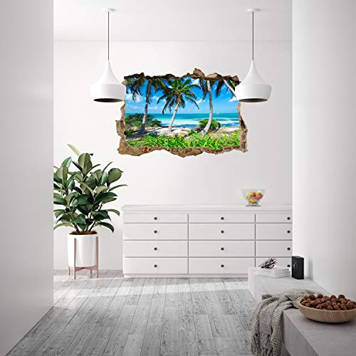 Wandmotiv24 Adesivo da Parete 3D Palme in Una Spiaggia Tropicale, Design 01, 120x90cm (BxH), Decorazione, murale, Finestra, Apertura, varco M0914