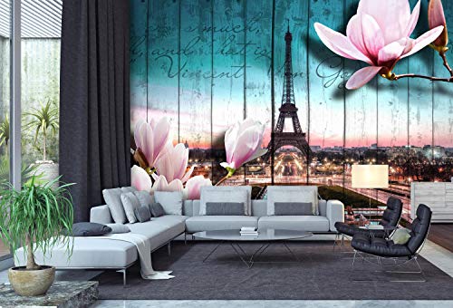 Wandmotiv24 Foto Murale Fiori di legno Parigi Eiffel Tower XS 150 x 105 cm - 3 parti foto, sfondi in tessuto non tessuto M0543