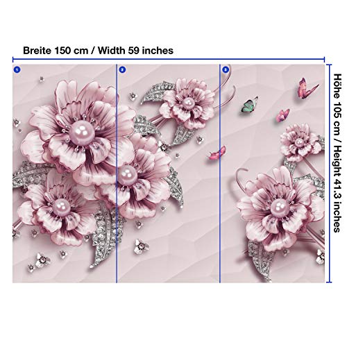 Wandmotiv24 Foto Murale Fiori rosa XS 150 x 105 cm - 3 parti foto, sfondi in tessuto non tessuto M1646
