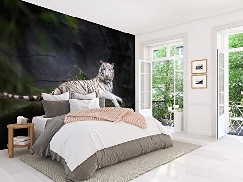 Wandmotiv24 Foto Murale La tigre bianca si siede in caverna XL 350 x 245 cm - 7 pezzi foto, sfondi in tessuto non tessuto M1027