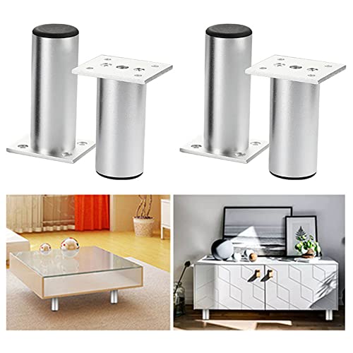 Wanfoou 4 Pezzi Piedini per Mobili Regolabili Altezza,Gambe per Mobili Piedini per Mobili in Lega di Alluminio Piedini per Cucina Piedini per Divani Gambe per Tavoli in Metallo 8cm,Argento
