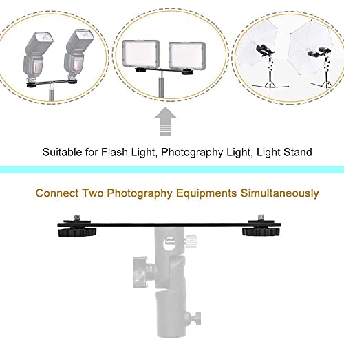 Barra di estensione del flash regolabile: portata regolabile da 4 a 18 cm. Permette di collegare due dispositivi contemporaneamente. Si prega di controllare la gamma massima regolabile per la fotocamera o gli accessori prima di ordinare.