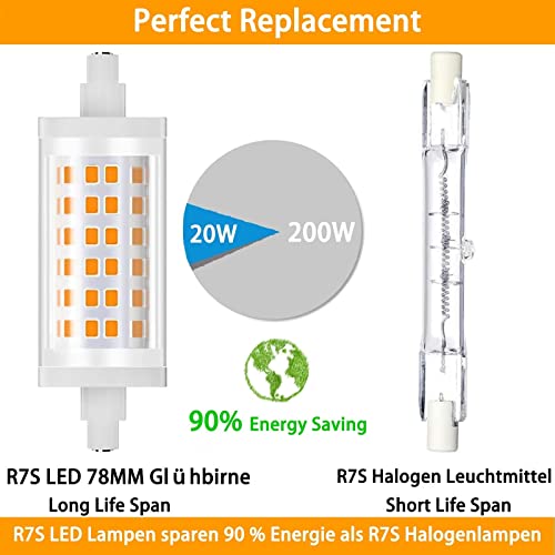 Wangdahua R7S LED 78mm 20W Lampada Dimmerabile Bianco Caldo 3000K 1800LM, Lampadine LED R7S 78mm Equivalente a 200W Lampada Alogena, Illuminazione Fascio 360°, Lampadina LED R7S COB, AC 190-260V