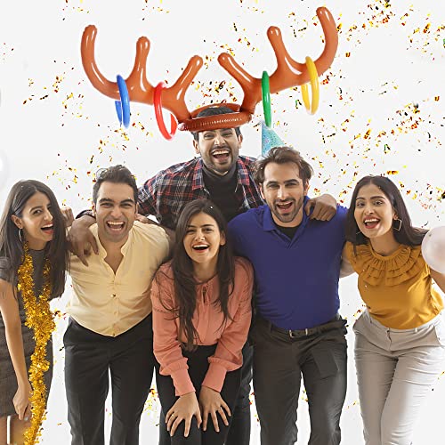 WANGJIA Gioco di Lancio dell'anello con Corna di Renna Gonfiabile Giochi interattivi per Feste di Natale per Adulti Cappello da Lancio con Anello di Renna per Bambini con 4 Anelli (Consegna di Colore