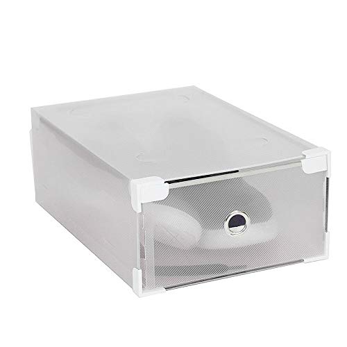 Risparmia spazio: con la scanalatura nella parte inferiore, le scatole per le scarpe possono essere impilate una per una con fermezza, aspetto più ordinato nella tua casa e più ordinato. Conserva le tue scarpe pulite e in ordine. Rendi la stanza più pulita.