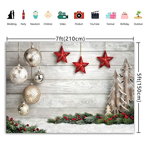 Wangrj, fondali natalizi in legno bianco di neve, per pavimento in legno, per albero di Natale, con stelle, sfondo di Natale, per neonati, Capodanno, feste, per studio fotografico, 7 x 15 m