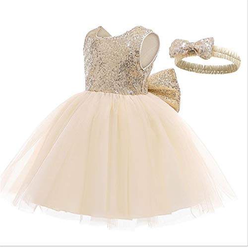 WangsCanis Abito da Battesimo per Bambina Neonata con Paillettes Pizzo Elegante Vestito da Principessa con Fiocchi per Festa Cerimonia Compleanno 0-24 Mesi