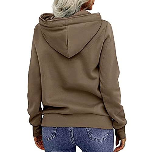 WangsCanis Camicetta Pullover a Maniche Lunghe con Cappuccio da Donna con Cerniera Felpa con Coulisse Giacca con Tasche T-Shirt Pullover Taglie Forti con Zip (Cachi, S)