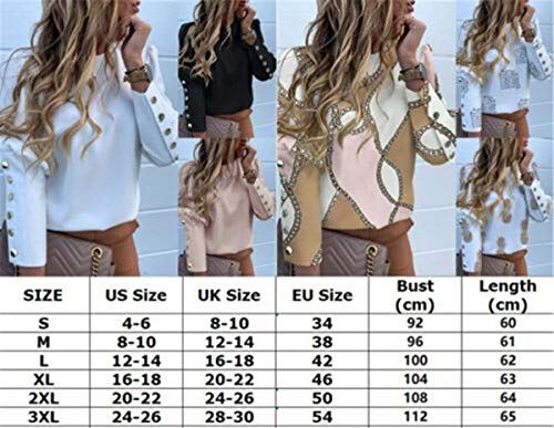 ❃【Design Unico】Blusa camicia per donna, girocollo, a maniche lunghe, decorata con bottoni metalici sulle maniche e sulla schiena, con stampa originale, stile casuale, elegante e vintage, abbinandosi perfettamente ai pantaloni, jeans, gonna e altri vestiti.