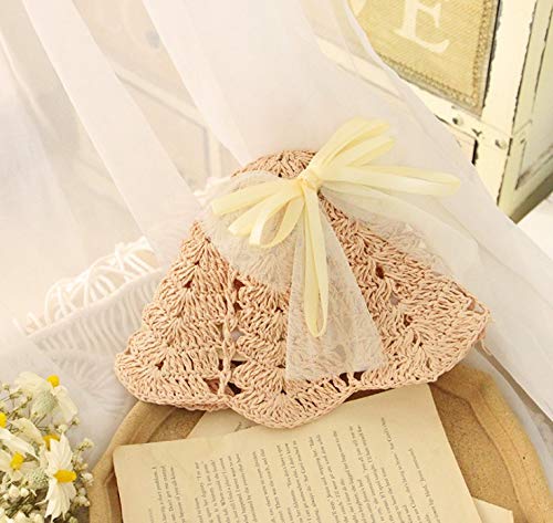 WangsCanis Cappello di Paglia per Bambini Resistente al Sole con Borsacon Fiocco in Pizzo (Rosa B, Taglia Unica(6-24 Mesi))