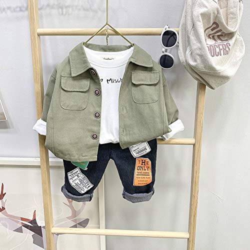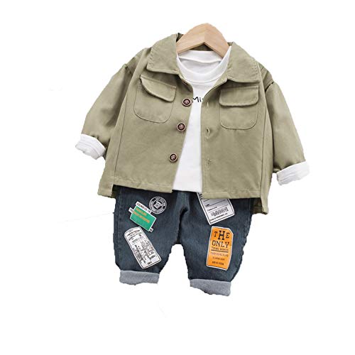 WangsCanis 3Pz Completo Autunnale per Bambino Neonato Pullover a Maniche Lunghe + Giacca Abbottonata + Pantaloni in Denim Set Sportivo (Verde, 90)