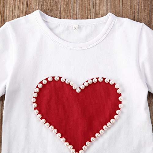 WangsCanis Completo Bambina 2 Pezzi Maglia a Maniche Corte con Stampa di Cuore + Gonna a Vita Alta Linea ad A per San Valentin 1-5 Anni