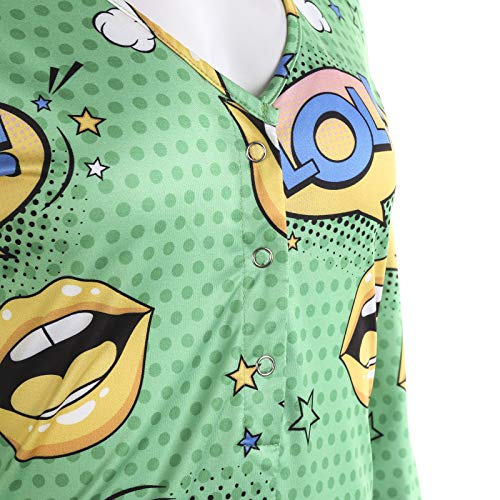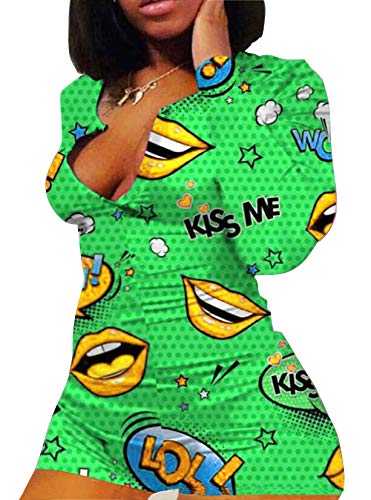 WangsCanis Tuta da Donna Pagliaccetti a Maniche Lunghe Scollo a V Tuta Corta Camicia da Notte Pipistrello Vita Alta Tuta Pantaloni Corti Body per Labbra Bodycon Sleepwear (E, XL)
