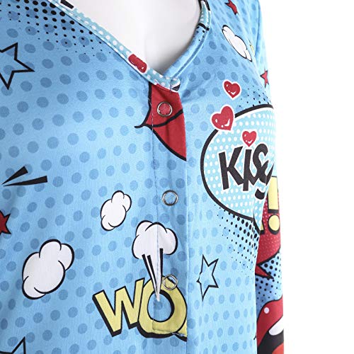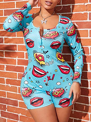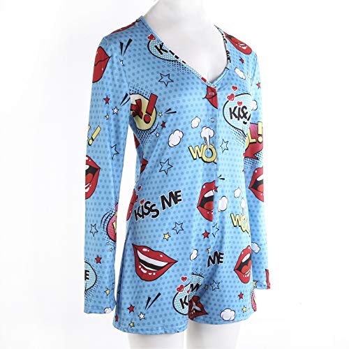 WangsCanis Tuta da Donna Pagliaccetti a Maniche Lunghe Scollo a V Tuta Corta Camicia da Notte Pipistrello Vita Alta Tuta Pantaloni Corti Body per Labbra Bodycon Sleepwear (A, L)