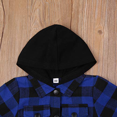 WangsCanis Giacca Camicia per Bambino Bambina con Cappuccio a Maniche Lunghe a Plaid Scozzese Giubbotto Abbottonato per Primavera/Autunno 0-4 Anni (Navy Blu, 2-3 Anni)