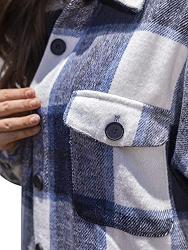 WangsCanis Giacca Camicia Lunga a Quadri per Donna in Flanella a Maniche Lunghe con Bottoni Collo a Risvolto Casual Elegante Moda