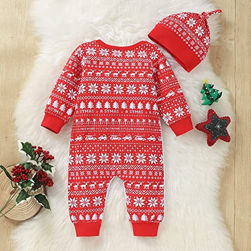 WangsCanis Pagliaccetto Neonata Neonato Unisex Costume Natale 2 Pezzi Tutina a Maniche Lunghe con Stampa di Babbo Natale + Cappellino Primo Natale 0-24 Mesi(#04 Bianco, 0-6 Mesi)