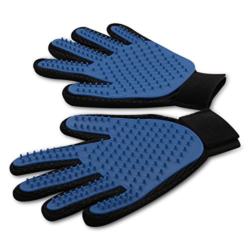 Wangstar Pet Grooming Gloves Mitts,Cat Dog Deshedding Bathing Massage Brush Glove Comb,Deshedding Glove for Gentle and Efficient,Set of 2 (right hand and left hand, Blue)
