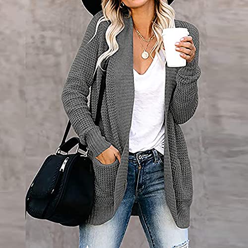 WANGTIANXUE Cardigan da donna, a maniche lunghe, oversize, per l'inverno, l'autunno, il cardigan, lungo cappotto oversize, per le mezze stagioni, lavorato a maglia grossa, maglione, grigio scuro, XL