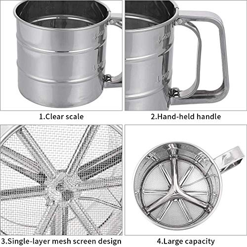 ❸ [Design dello schermo] Lo schermo è abbastanza fine da filtrare rapidamente le impurità della polvere, espandere la struttura della farina e aumentare il contenuto d'aria nella farina. Molto adatto per setacciare farina, mandorle in polvere, zucchero a velo o polveri simili.
