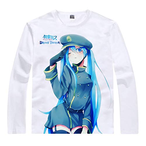WANHONGYUE Anime Hatsune Miku Vocaloid T-Shirt Maglia a Maniche Lunghe Adulto Cosplay Pullover Maglietta Sport Tee Tops Bianco/6 XL