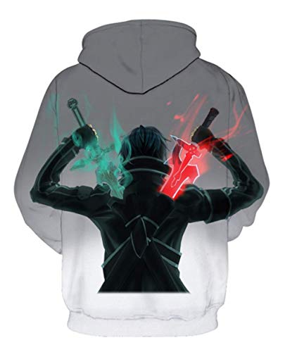 WANHONGYUE Anime Sword Art Online Sao Pullover Felpe con Cappuccio Adulto Cosplay 3D Stampa Hoodie Maglione Sweatshirt Cappotto Grigio L