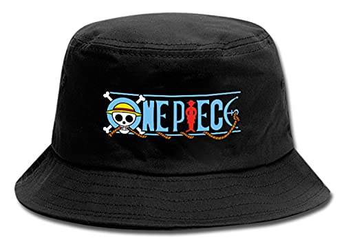 WANHONGYUE One Piece Monkey D Luffy Anime Bucket Hat Cappello da Pesca Tesa Larga UPF50 + Cappello da Sole Estivo Pieghevole Cappello Pescatore Nero/1
