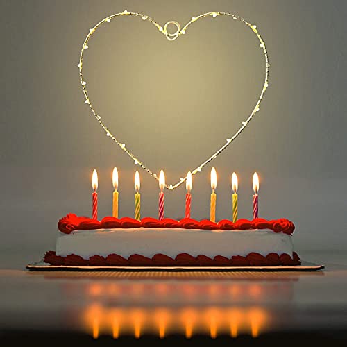 Wankd Ghirlanda luminosa 35 LED, forma cuore, luce bianca calda, funzionamento batteria, luci LED decorative in filo ferro, da appendere, per interni ed esterni, per feste matrimonio (1 PCS)