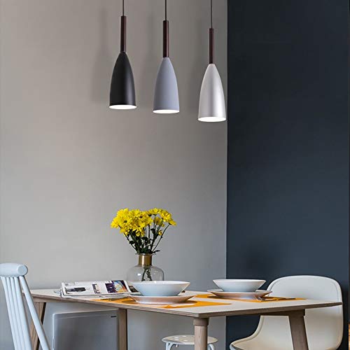 Wankd 1 lampada da soffitto in stile Nordic Macaron in alluminio + legno lampadario lampadario da cucina, illuminazione per il soggiorno, illuminazione per rimorchio, illuminazione (grigio)