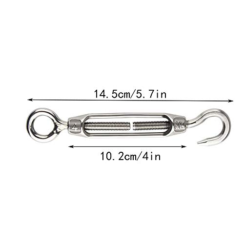 Wankd - Set di 6 tenditori in acciaio inox, con morsetto M4, in acciaio inox, regolabili, ganci e occhielli, 10,2 cm x 14,5 cm