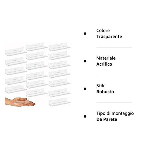 WANLIAN Confezione da 18 supporti da parete in vinile acrilico, rack per dischi in vinile, durevole, supporto galleggiante (trasparente)