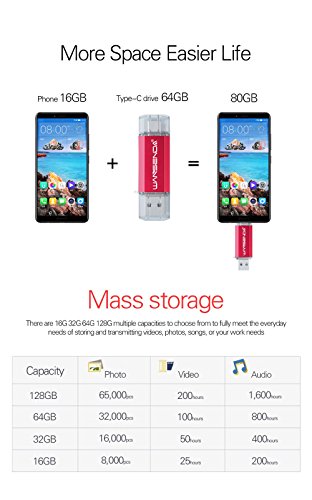 Wansenda - Chiavetta USB OTG 2 in 1, USB 3.0 e Type-C Pen Drive 16 GB, 32 GB, 64 GB, 128 GB, USB per dispositivi Android di tipo C, PC/Mac (16 GB, rosso)