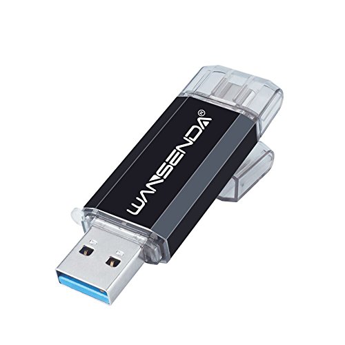 Wansenda TC100 tipo C USB Flash Drive 16 GB 32 GB 64 GB 128 GB OTG (On the Go) 2 in 1 USB3.0 & type-c flash Pen Drive per dispositivi Android Smart Phone e Macbook nero Nero 32 Gb