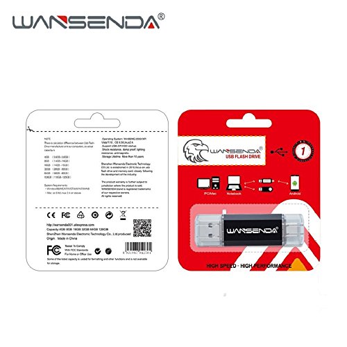 Wansenda TC100 tipo C USB Flash Drive 16 GB 32 GB 64 GB 128 GB OTG (On the Go) 2 in 1 USB3.0 & type-c flash Pen Drive per dispositivi Android Smart Phone e Macbook nero Nero 16 Gb