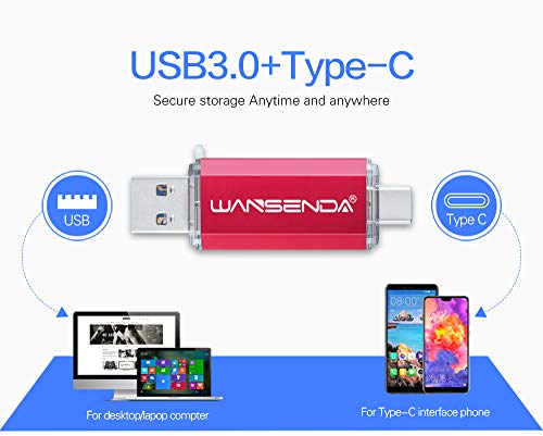 Wansenda TC100 tipo C USB Flash Drive 16 GB 32 GB 64 GB 128 GB OTG (On the Go) 2 in 1 USB3.0 & type-c flash Pen Drive per dispositivi Android Smart Phone e Macbook rosso Red 32 Gb