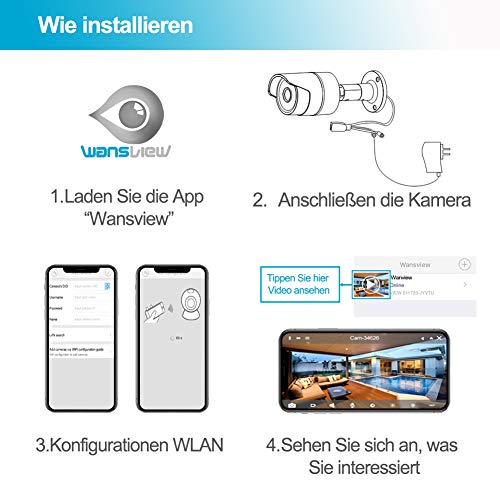 ✅ 【 Facile regolazione e visualizzazione su più dispositivi 】 La fotocamera supporta connessioni LAN e Wi-Fi. Si prega di scaricare l'app da parete dall'App Store o Google Play, accendere la fotocamera con l'alimentatore in dotazione, collegare la fotocamera al 2.4 GHz WLAN o il router con il cavo RJ45. Aggiungete la fotocamera all'app mobile e guardate la fotocamera con l'app Wansview sul vostro cellulare. È possibile utilizzare la fotocamera in diversi modi.