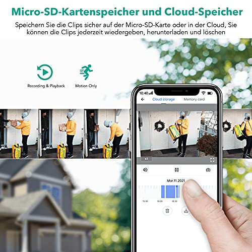 【Archiviazione flessibile e funziona con Alexa】 Questa telecamera di sorveglianza supporta la scheda Micro SD da 128 GB (non inclusa) e l'archiviazione sul cloud. È possibile registrare video di allarme su una scheda Micro SD o un servizio cloud. Un servizio di archiviazione cloud sicuro crittografato ti offre la massima protezione dei dati sulla privacy. Nessuno potrebbe accedere alle tue informazioni senza il tuo permesso.