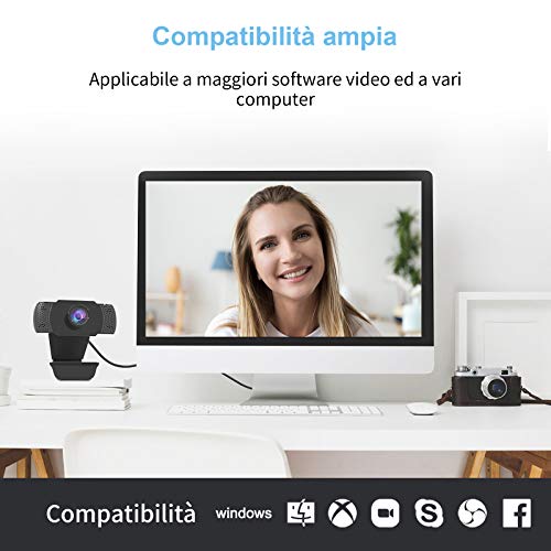 ◆【Webcam 1080P USB con Immagine ad alta definizione da 2 Megapixel】 La webcam per PC è dotata di una risoluzione 1080P e di un obiettivo da 2 Megapixel. Grazie alla tecnologia avanzata di compressione H.264, la webcam ti offre un tempo fantastico con immagine nitida a 30fps e una migliore visualizzazione con un grandangolo di 90°.