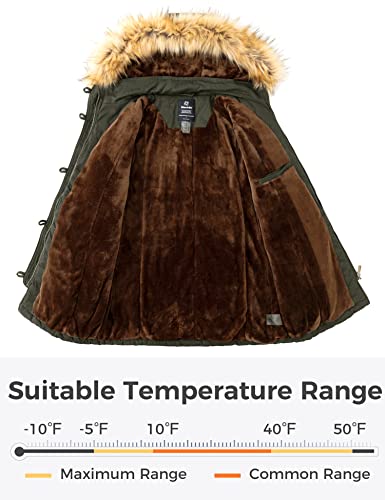 Wantdo Cappotto Foderato Imbottito Parka da Esterno Spessa a Vento Giubbotto Lavoro Invernale Giacca Media Lugghezza Casual Donna Verde Militare L