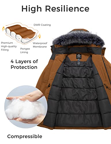 Wantdo Cappotto Spesso Caldo Invernale Giacca Media Lunghezza Antivento Parka con Cappuccio in Pelliccia Giubbotto Slim Fit Idrorepellente Uomo Giallo M