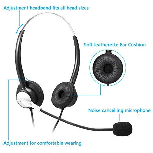 Wantek Dual Call Center Telefono Cuffia con 2,5mm Cuffia Jack + Microfono + Volume Mute Controllo per Cisco Linksys SPA SPA921 SPA922 SPA941 303 501G 502G 504G 508G 509G 525G IP Telefono(H120S01J25)