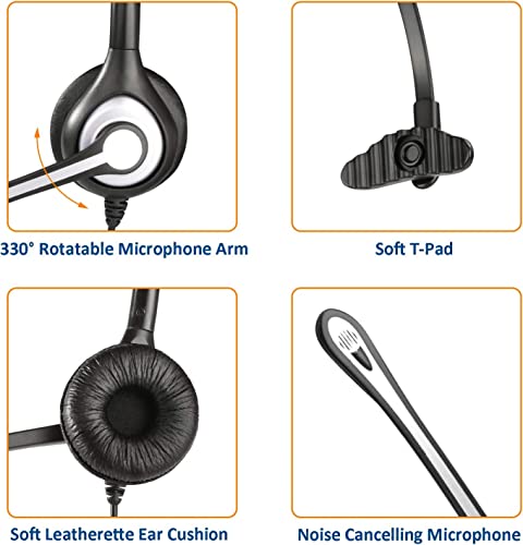 Auricolare più comodo: auricolare Ufficio Super leggero per ufficio RJ con fascia di testa regolabile per adattarsi a tutte le dimensioni della testa, cuscino auricolare di altissima qualità e morbido cuscinetto per l'orecchio in pettinatura per tutto il giorno di indossare il comfort.