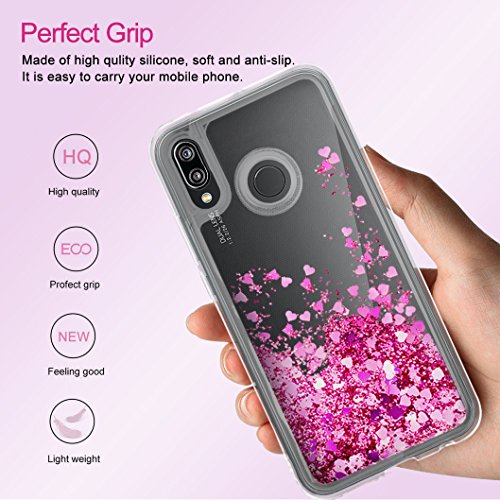 Wanxideng Cover Huawei P20 Lite, Custodia Trasparente Morbido in Silicone TPU con Glitter & Cuore Liquido, Liquid Quicksand Case - Oro Rosa