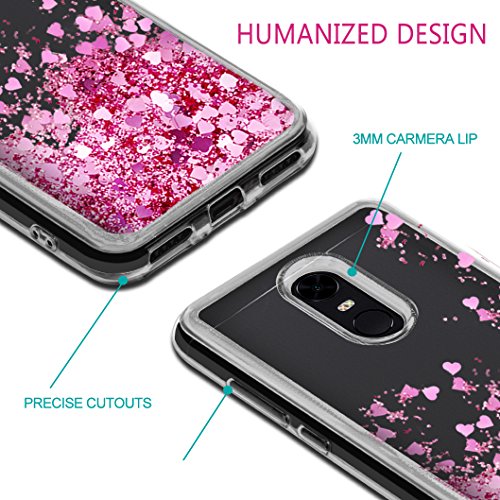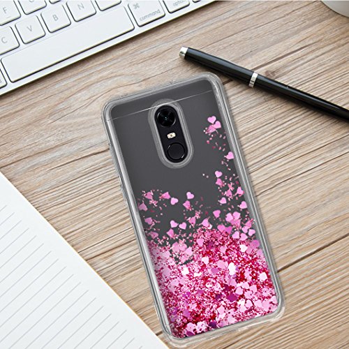 Wanxideng - Cover Xiaomi Redmi 5 Plus, Custodia Trasparente Morbido in Silicone TPU con Glitter & Cuore Liquido, Liquid Quicksand Case - Oro Rosa
