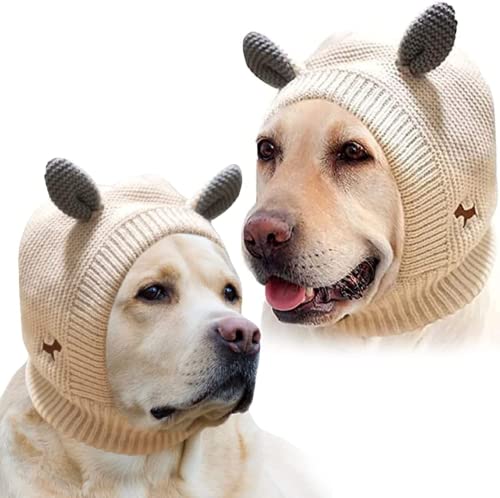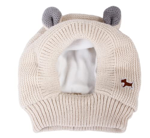 WANYAN Orecchie silenziose per Cani, paraorecchie per la toelettatura del Cane, paraorecchie per Cani Protezione antirumore, Berretto da Cucciolo Caldo Lavorato a Maglia (Beige)