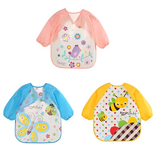 WanYangg Set Di 3 Bib Bavaglini Manica Lunga Impermeabile Grembiule Con Maniche Manica Lunga Cartone Animato Bavette Bavaglino Unisex Per Neonato Bambini Piccoli Da 6 Mesi A 3 Anni